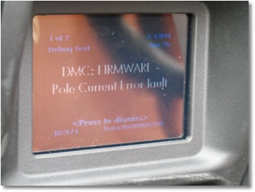 Guys, remember: We are surrounded by computers! On a test drive at sunny Monte Carlo, suddenly VP12 stopped - with a sign of the upcomming era - a firmware error ;-) The car stopped in the famous Monaco Port chicane on the F1 circuit, and was pushed down sideways. The error message was: "Direct Motor Control Firmware - Pole Current Error Fault". This is an error message only available on debug mode of the VPs. The message for us ordinary users would have been "Motor service requested". Uh, one small step away of the "general error 40 fault" ;-) After several tries of software-reset the car, which did not work, it was decided to do the "most possible" reset under the dash. |
